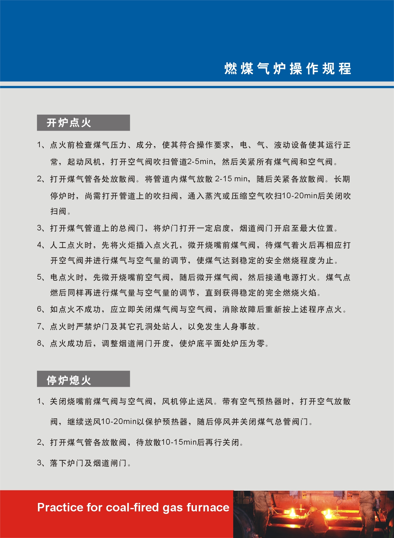 點火檢查煤氣壓力、成分,使其符合操作要求,電、氣液動設備使其運行正常,起動風機,打開空氣閥吹掃管道